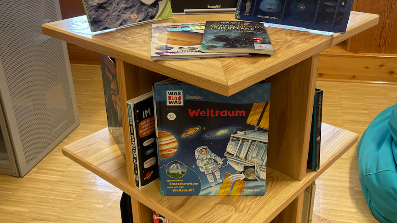 Oktober, 2025 Unser Thementisch Unser aktueller Thementisch zum Thema Astronomie passt zu unserer "Sternenklang" Veranstaltung am 07. 10. 2025, bei der wir uns mit Mona Mond und Mike Stern zu einer Reise durch den Nachthimmel aufmachten. Thementisch Astronomie Thementisch Astronomie